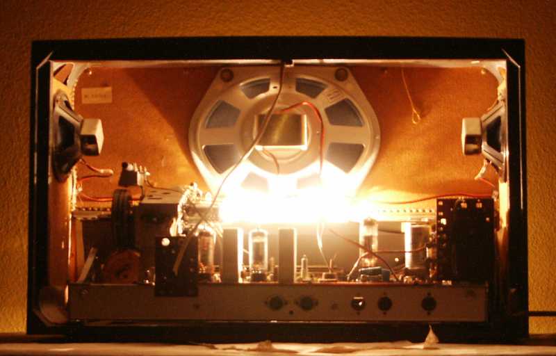 Gerät aus dem Jahre 1962. In meinem Besitz seit Dez. 2005. Herkunft: Flohmarkt. Sehr guter Original-Zustand. Hier war ausnahmsweise mal eine Röhre defekt. Hervorragende Empfangseigenschaften!